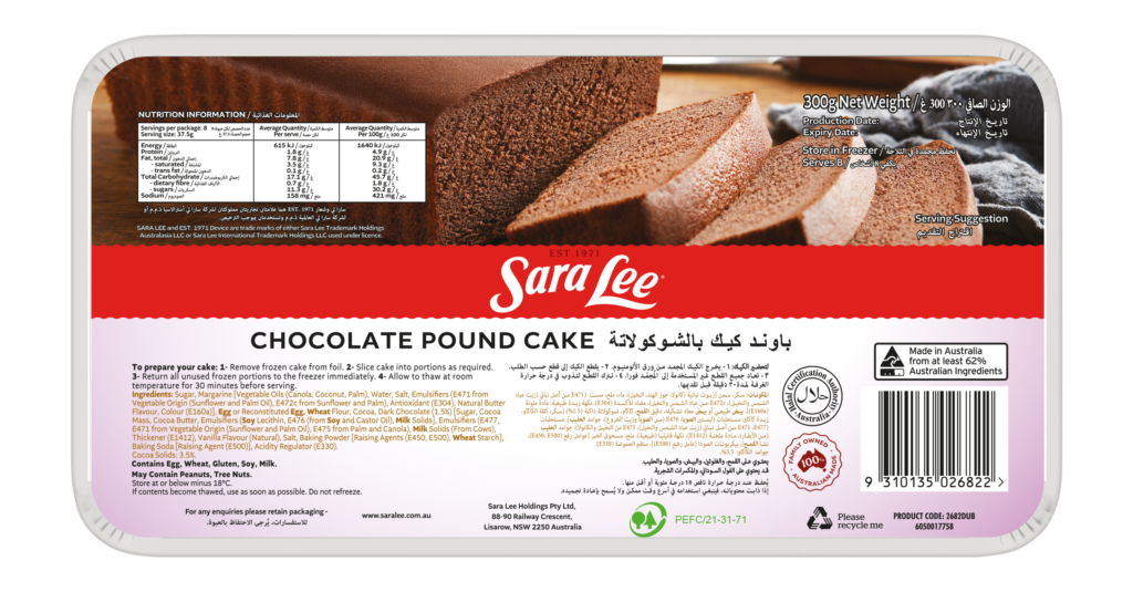 Our Chocolate Pound Cake is proudly made in Australia using a signature recipe that delivers a moist, delicious product every time.