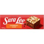 Sugar, Carrots (16%), Wheat Flour (Thiamine), Canola Oil, Egg Or Reconstituted Egg, Cream Cheese (7%) [Milk, Cream (Milk), Milk Solids, Salt, Vegetable Gums (Carob Bean, Guar Gum), Lactic Acid, Starter Culture], Vegetable Margarine (Milk), Pineapple, Walnuts (2%), Glucose, Butter (Milk), Thickener (1412), Raising Agents (450, Sodium Bicarbonate) (Wheat), Cinnamon, Salt, Cocoa, Emulsifiers (Vegetable – 477, 471, 475), Vegetable Gum (Acacia), Citric Acid.