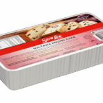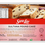 Sugar, Wheat Flour, Sultanas (18%), Egg or Reconstituted Egg, Margarine [Vegetable Oils, Water, Salt, Emulsifiers (471, 472c), Antioxidant (304), Natural Flavour, Colour (Carotene)], Butter (Milk), Thickener (1412), Emulsifiers (Vegetable – 477, 471, 475), Raising Agents (450, Sodium Bicarbonate) (Wheat), Milk Solids, Salt, Oranges, Lemon Juice Concentrate, Spice, Acidity Regulator (Citric Acid).
