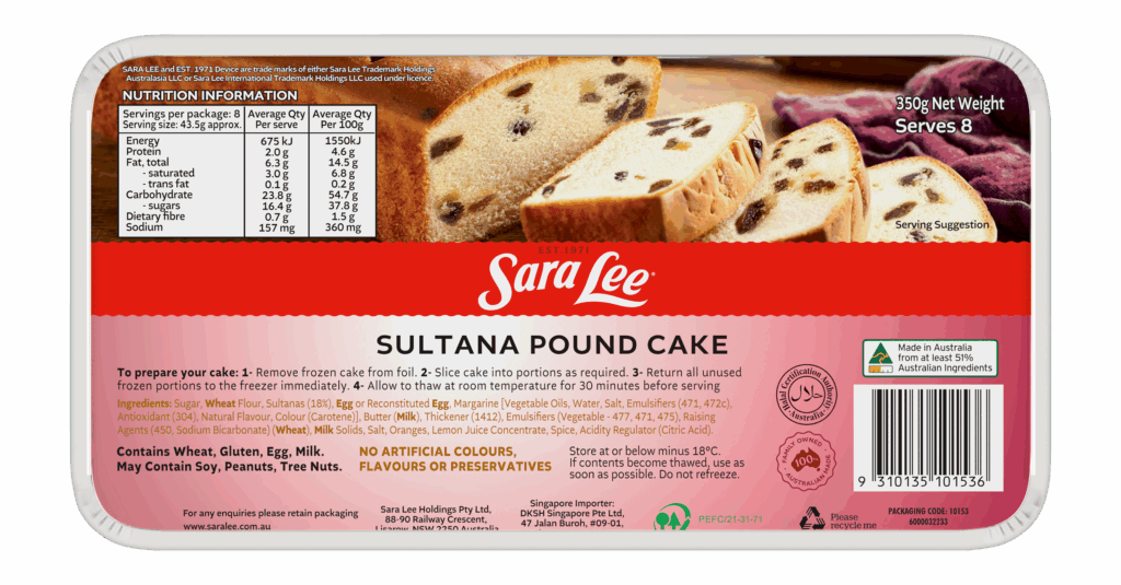 This limited offer Sultana Pound Cake is a delightfully fruity blend of a classic. Proudly made in Australia, this cake is moist, delicious and perfect for any occasion.